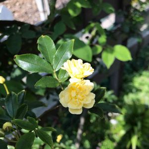 やっと昨日咲いた黄モッコウバラ 優しい黄色ですよね