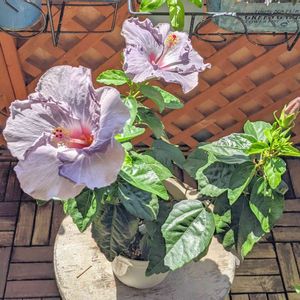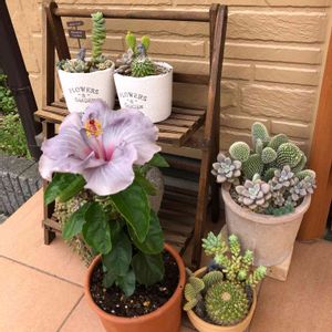 🌺ケイト🌺 ニューロングライフシリーズのハイビスカス 淡い爽やかなブルーグレーの花に魅了されて連れて帰りました。 次から次と咲いて楽しませてくれてます😍 ハイビスカは水と肥料を好みますので注意して育てたいです☺️😂