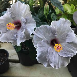 ハイビスカス ニューロングライフ ケイト やっぱり1日で萎んだんだよなぁ それとこんな色でデニムブルーっていう品種があったけど、芽が出てこないんだよなぁ… 今年はハイビスカスは成績悪いぞぉ