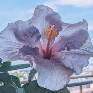こんばんは~😊 今日は、心地よい風が吹いて快適なお天気でした(∩´∀`∩)💕 予定通り、ジューンベリーの実を3分の1くらい(直径20センチのボールスレスレ1杯666g)取ったので、あとは鳥さんにあげます。早めにジャムにしようと思います。 今日のpicは、先日駅前の園芸店で偶然出会ったハイビスカス NEWロングライフシリーズの“ケイト”。 (以下付いていた札から) 従来のハイビスカスに比べ、非常に花持ちの良いコンパクトタイプのハイビスカスです。花芽が一度にたくさんたまるので次々に花が楽しめます。 と書いてありました。何年か前にデニムブルーと言うハイビスカスを見つけて、衝撃を受け、買って帰るかどうか悩んた末、お高かったので、諦めた事があって、その後やはり欲しいと思った時には売り切れていて、それ以来出会えて無かったんです。 それで今回ハイビスカスが沢山並んでいた中でひとつだけデニムブルーかと思うこのケイトさんがあって、あった~!と近づいたけど、デニムブルーでは無かった…。でもそっくり。ネット調べてみても、花が2~3日持つし多花だと…しかもデニムブルーよりかなり安い!となればお連れしない理由が無く…今回お連れしました(∩´∀`∩)💕 店頭では、花はちょうど萎れていたので、今日初めて花を見ました。ちょっと札にあった色より薄めな感じですが… これからたくさんの花が咲くと思うと楽しみです(*´˘`*)♥