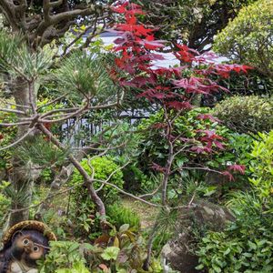 盆栽のモミジが大きくなり赤い新葉でイキイキ〜✌️😄🎶✨ モミジは種から大きくなりました!! 正月用盆栽に松と南天の寄せ植えに〜長寿だよ💖