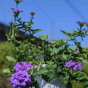 おはよう御座います 今日は晴天だね〜 青空に映える大輪バーベナ!!👏😄✨ 大好きな色合い💖 挿し木から〜寒い冬も乗り越え見事に艶やかに🎉🥰 癒やされてね💞
