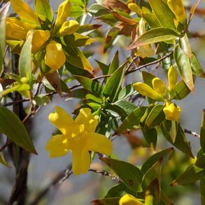 上品な香りを放ち満開のカロライナジャスミンだよ✨💖 鉢植えの老木にもかかわらず寒さ暑さに耐え素敵な花を〜沢山咲かせています 嬉しいなぁ〜有難うね💖✨