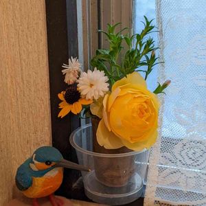 トイレの生け花です 5日目の黄色の薔薇!!生き生きと輝き部屋が明るい〜〜い👏😄✨✨✨