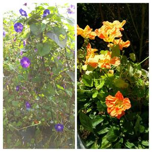 夏の名残り…… こぼれ種からの 朝顔とナスタチウム(’-’*)♪ 今が満開🎶