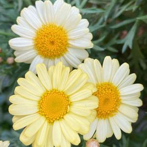 おはようございます☀ マーガレットが可愛く咲きました🌼 白と黄色のお花が可愛らしいです💛🤍🍃 蕾もたくさんなのでこれからの成長が楽しみです🎶