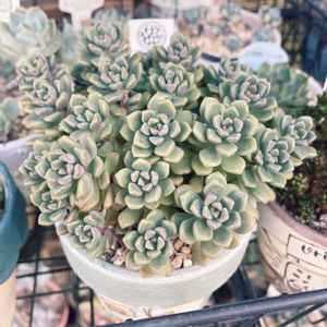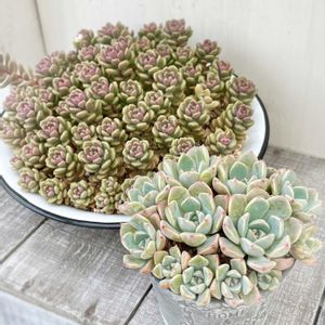 こんにちは~ฅ՞•ﻌ•՞ฅ 今の気温は32°C… 十分暑いのに35°C超えてないとホッとしちゃいます 暑さに麻痺してきてますね💦 葉挿しっ子のピンクプリティを春に一鉢にまとめました 今のところ脱落者ゼロ😊 このままがんばって秋にかわいい紅葉見れるといいな( ⁎ᵕᴗᵕ⁎ )♡ ホーローのタライに入っているのは だるま姫秀麗×スプリングワンダー 春にカットして挿しといたのがニョキニョキと伸びてきています😊 めちゃくちゃ増える子! もっと大きいホーローのタライにも 増やしちゃおうかな(๑´ლ`๑)フ°フ°