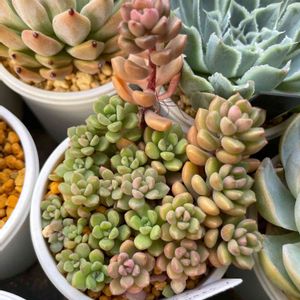 今日の一枚💕 曇り気味だけど暖かい日です😊 片付けないといけないところは 見て見ぬふりで 寄せ植えをひとつ作ってみました✨ ↙️レッドチリペッパー ロウルサンコさんオリジナル スパイシーな色😁 ↗️プベスケンス ベルベットみたいな葉です ↘️だるま姫秀麗×スプリングワンダー つぶつぶ屋さんは小梅と呼んでますね どれも小さくて可愛いく、 増やし中の子たちです👍💕💕