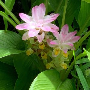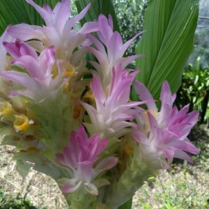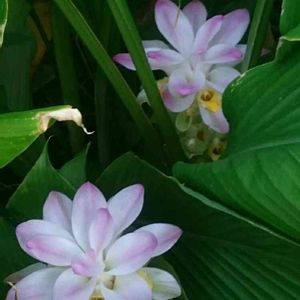 今日のお花 🍀ウコン ショウガ科 ハルウコンとアキウコン 葉っぱに違いがありました