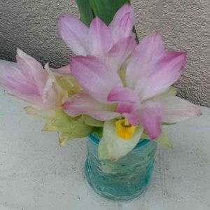 夏の常連さん、ウコンの花とハナトラノオ🍀 夏になり、ウコンの花をJAで見つけると、また会えたね、と嬉しくなります😊 クルクマの純度の高い白も好きですが、ウコンの花の透明感も大好きです🍀 ハナトラノオのピンクがかった紫色とも 私的には、ベストマッチ💕 無手勝流で自己満足😁生花を嗜まれている方、片目をつぶって、ご覧ください🙇♀️ 生け方はともかく、お花は美しく輝いています💕🍀😊
