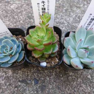 こんばんは🌟 ママ休みで独りの時間を満喫し、帰宅後は子供達と遊んでいました👨👩👧👦 子供達は主人と船橋イオンに行っていたようで、娘が色々お話ししてくれました😊 さて、気になってる人がもしかしたらいるかも知れないし全くいないかも知れない「本日のあきの戦利品」のお時間です(´ω`)(笑) ドドランタリス、謎エケ…500円 インブリカータ、アトランティス…各200円 竜王角、桜吹雪、八角ポット10個…各100円 でございました✧︎◝︎(*´꒳`*)◜︎✧︎ 二和園にドドランタリスいたーーー❗️ もう真っ先にカゴに入れましたよ‼️ 今日はチワワエンシスがいなくて落ち込みましたが、ドドランちゃんに出会えたのは本当にラッキーでした🍀 あとは前から気になっていたインブリカータのとても綺麗な株があり、こちらも嬉しかったです🎶 七福神×ギビフローラ・メタリカの交配種らしいですが見た目全く七福神です👀 むしろインブリカータも七福神として扱われていたりして、最早同じなのか別物なのか💦 ま、可愛ければ何でもいいです、私は( ̄∀ ̄)(それにしてもギビフローラ・メタリカってめっちゃイケてる名前❤️笑) 後は謎のエケベリア アトランティスとチワワエンシスっぽいエケちゃん。 アトランティスはおっちゃんに「これ分かんねぇーな」って匙を投げられました(笑) 深いブルーが綺麗です✨ チワワっぽいエケはグランカクタスで発見。 社長も何か分からず私も最後まで悩みましたが、綺麗で可愛かったのでお迎えすることに😊 竜王角と桜吹雪はあって良かった〜❣️ 欲を言えば桜吹雪はもう少し大きいと良かったけど…これを大きく育てるのが醍醐味ですよね、今はちっちゃで可愛い😍 蚊のせいで戦利品をじっくり眺めること叶わず、少しモヤモヤしていますが、こうして振り返るとなかなかいい狩りが出来たなぁと幸せ気分です💕 今夜はよく眠れそう(*´﹃`*)💤