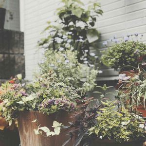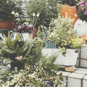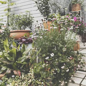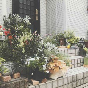 グリーン多めのここからの眺め 好きだなぁ 鳥かごの中の苗たちは、元気です 後ろの自作寄せ植えの苗たちも元気そう 自分で寄せ植えた子たちは、不格好でも愛おしい❤︎ 最近は自作寄せ植え率高し❤︎