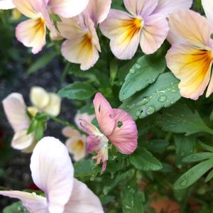 このジョウロの鉢もお願いした寄せ植えです 花柄模様がついてたのね… 古い鉢で、錆びたところが気に入って使ってたけど、いつも葉で隠れてたから、ダサい鉢だとは… モリモリになって隠れるまで見ないフリ… 明日は、お天気も回復するみたいだから 太陽の下で写真撮りたいです♪