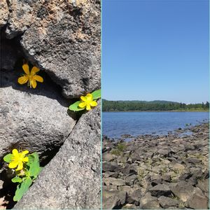 空沼岳にて⛰️〈2022.7〉 しばらく登っていくと目の前に大きな沼(真簾沼)が現れます。その岩場に咲くハイオトギリさん。 どうしてそんなに目立たないところで咲いているの。 🏷️石の日 🏷️美しく青きドヨウ