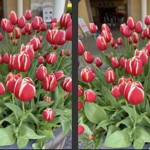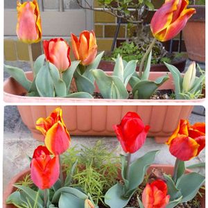🌷万博記念公園のチュウリップ🌷 下は我が家の芽が出たのを 買って今年に植えたもの あまりのおやすさについつい 手が出てしまいました 安さに弱い私😆 🏷️真っ赤な火曜日に参加します