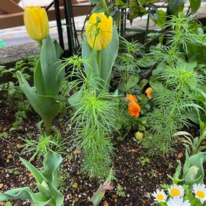 今にも降り出しそうな曇り空☁️ 小さなお庭に 黄色いチュウリップ💛 とても可愛い色(⑉︎• •⑉︎)♡︎