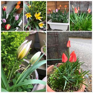 孫娘が保育園で植えた球根が🌷 卒園式に連れて帰る💕 他の球根はボランティア活動で秋に…ラナンキュラス・野放しアイフェイオン・野放しチュウリップなどはまだ花芽も😅