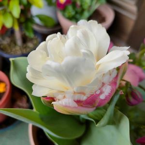 こんにちは😃 まだまだ、咲いている八重咲きのちゅうりっぷ🌷 2歳の孫がいつも見てお水をくれたり、元気?と話しかけて、気にかけています♪♫♪ 🏷春色ピンクに参加させて頂きます