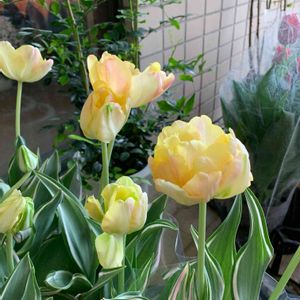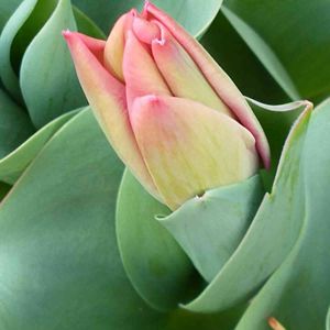 このチュウリップ、葉が斑入りでピンク色も入ってて綺麗でした〜😆