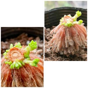 キモカワ倶楽部サマ主催の 🏷オケツの日に参加させていただきます! 右は、夏に焦げてボロボロになったダイソー産の帝玉(多分)。 汚ケツが脱皮して美ケツが出てきました🍑✨ 左は、2月に主人が買ってきたヒョロヒョロノビノビでカイガラムシまみれだったウラルトルマリン(センペル)。 オルトラン風呂に浸けて、その後✂️しました。 今は、いい感じに育ってきています。 どちらも、ケツか、、、いえ! 結果オーライです👍🏻✨