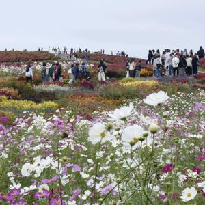 「真っ赤に紅葉したコキア、そしてコスモス」 *国営ひたち海浜公園にて* 昨日訪れました。月曜日で今にも雨が降りそうな空模様でしたが、「見晴らしの丘」は外国からの観光客も含め混み合いってました。 🏷カラフルな火曜日 🏷真っ赤な火曜日