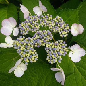 あまりに外が晴れて暑いから、もう一枚の紫陽花。 あーこの花の色がやっぱり涼しいや。 白い花も可愛いし。 🏷️青く美しきドヨウ