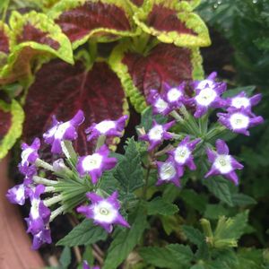 トレニア、別名ハナウリクサ、または夏スミレ。 夏が終わり始め、葉がライムグリーンに。 でもまだしっかりと花は咲いてます。 私は昨夜が涼し過ぎて、鼻🤧が泣いています😅💦