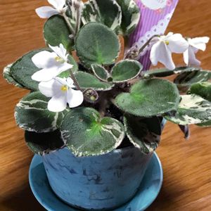 斑入りミニセントポーリアの花が咲きました✨ ほんのりピンクです☺️