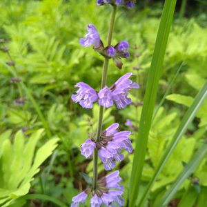 7月上旬頃に刈り取ったばかりで草が余り伸びていない農道脇の空き地に、アキノタムラソウだけ花茎を伸ばして花を咲かせていました🤗 強い子です✊💓