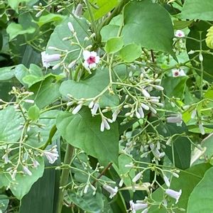 クサギの花が咲き始めていました🤍🤍 萼の中からぴゅっと飛び出した蕾が可愛らしく、萼もライムグリーンで綺麗です💚💚 その萼が秋には赤に変わって開いて青い実を引き立たせるのですね、楽しみです❤️💙