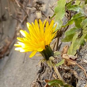 陽だまりに1輪、輝く様な黄色に咲いていました✨🧡 ロゼット状の葉に接着剤でくっ付けられた様に…😄これなら、どんな強風でも大丈夫です🎶💕