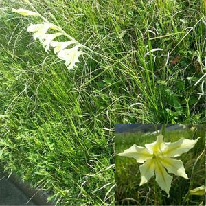⚜⚜⚜⚜⚜⚜⚜⚜⚜⚜ 早速、名前教えてのダクに回答頂き ありがとうございます🙏 「スプリンググラジオラス」と解りました アフリカ、ヨーロッパでグラジオラスの 名前で300種類ほど有るみたいです 空き地に、存在感バリバリで咲いて 居ました、百合かと検索しましたが… 解らず、初めて「名前教えて」をして しまいました。(//∇//)🙏😀