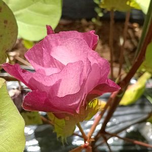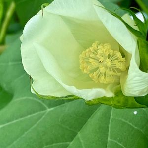 昨日 畑に行ったら 待望の綿の花が咲いてた✳️ 3年かかってやっと 多分🤔 1年目も2年目も綿は綿だけど 綿が小さい💭💭✳️ 仕方ないから販売してる 大きな綿から種を取り出し蒔く 花がこれなんです🤍 昨年までのはオクラの花と同じ🌼 きっと 大きな綿が😚 楽しみ〜😚 実になればのお話🐛❎