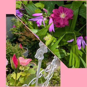クレマチス レッドスターとドクターラッペルの共演💓もう少ししたらプリンセスダイアナがこの横に咲きます😊