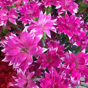 カーネーション スターチェリー 花びらがとがっているのでカーネーションの仲間とはみえませんでした。 色がかわいいですネ!