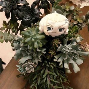母自慢の多肉ちゃんズ❤️ インパクトありまくりの賑やかな寄植えです☺️売り物みたい💕 ルビーネックレスがゴージャスに演出✨ (今回は妖精2号くんに写ってもらいました😉)
