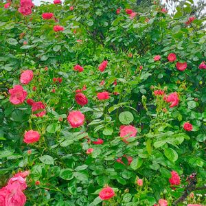 バラ.バラ科 アンジェラ もう、何年間も 咲いてます。 高さも2.5m位に 育っています。 このバラは丈夫です。