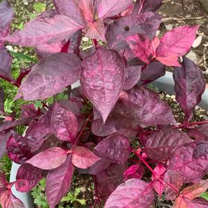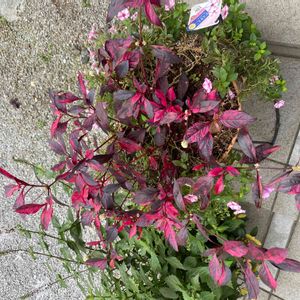 花は咲いていませんが、アルテルナンテラも赤葉のセンニチコウですね❣️ またまたどんどん伸びて、またカットしなければ...💦 下のヒポエステスもこれでも伸びていますが...寄せ植えのバランスが全くとれていません。 アルテルナンテラは日が短くなると花が咲くらしいのですが...蕾はどこにも出ておらず...秋には咲きますか? どこで切れば良いかしら😓