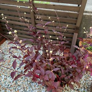 涼しくなったらブライダルベールがまた咲き始めています🤍 夏の暑い間はつぼみのまま咲きませんでした。 ちょっと伸び放題です💦 右隣はアカバセンニチコウ、お迎えしました😊 赤紫の葉っぱが綺麗です。 白い丸い花も可愛い💕 普通の千日紅みたいに花を乾燥させて春に種まきすれば芽がでてくるかな😌