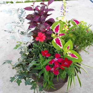 寄せ植 やっと出来ました😃🎶 綺麗な葉のアカバセンニチコウを購入たので、寄せ植えにチャレンジしました✨ 挿し木をした葉っぱ類と、個々に育てていた花、コリウスを使って悪戦苦闘の結果、何とか出来あがりました。 (((^_^;)