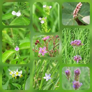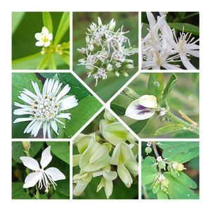 散歩で出会った ちっちゃい 白い花集め 名前よく分からないのもあります。違っていたら教えてください。 左から ⚪上 ザクロソウ ヒヨドリバナ センニンソウ ⚪中 タカサブロウ メドハギ ⚪下 ガウラ エンジュ オオニシキソウ