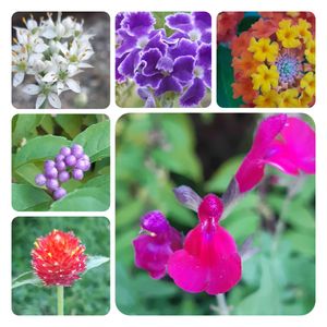 散歩で出会った ちいさいこたち ニラ デュランタ ランタナ ムラサキシキブ センニチコウ 大きな枠は セージ?