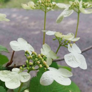 ケナシヤブデマリ♡ 家の周りに咲いてます。 この道を左に下りながら左直角カーブの両脇が側溝と川の狭い道…雪道❄️の時は車が落ちないかドキドキの難コースを無事に通ると我が家に到着😃💦