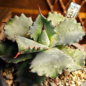 アガベ 兜蟹(かぶとがに) まだ無いですが、連棘が特徴のアガベ。 小さいうちは、特徴があまりでない種類が多いので、札の紛失には要注意です⚠️