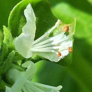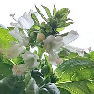 窓辺の ˚*.꒰ バジル ꒱.*˚🌿 水差し育成中のバジルに お花が咲いていました