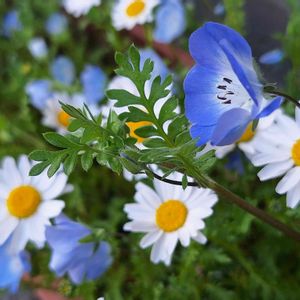 やっと💦💦お目見え 🩵🩵🤍ネモフィラ🤍🩵🩵 🚩我が家の一等賞 💙一番花🌞 お日様の光を浴びて嬉しそう → → → → slide 💙二番花 蒼く色づいた蕾 これから仲間がどんどん増えるね 楽しみだな ⸜(*ˊᗜˋ*)⸝ワーイ🤍🌿🩵🩵🌿🤍🌿
