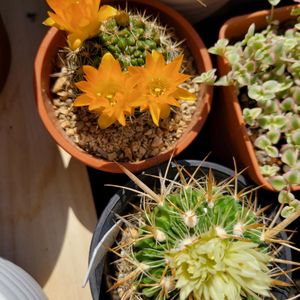 こんにちは~😊 ☀️だけど寒~い😓 ↑は名無しのサボテンさん😂 オレンジ色がとっても綺麗✨ ↓は雪渓丸❄️ 優しい黄色がかったクリーム色✨ 何日も全開しないんだけど これくらいしか開かないのかな~('_'?)