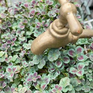蛇口付きの鉢にクローバー🍀植えてます🤗蛇口がなんとも可愛い(,,> <,,)♡ 5時まわって雨が降り出しました☔️お花に水遣りしなくていい🤭٩(>ω<*)وラッキー