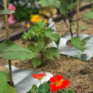 ナス🍆の周りに、葉ネギとイタリアンパセリ植えました。