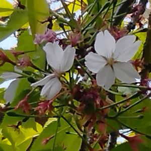 ちょうど満開の山桜、みんなが見上げて笑顔になってました。